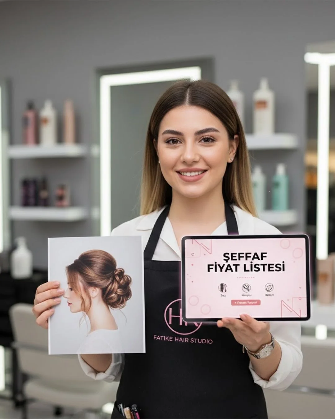 Seferihisar'da modern saç kesimi, profesyonel fön ve özel gün topuz tasarımları için güncel fiyat listemiz.